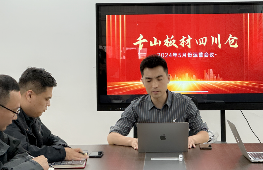 5月8日,千山板材四川倉4月份銷售總結(jié)會于成都倉儲中心召開,復(fù)盤銷售及重點工作推進(jìn)情況,研判四川倉內(nèi)外部發(fā)展形勢,思考謀劃2024年下半年整體方向及工作思路。