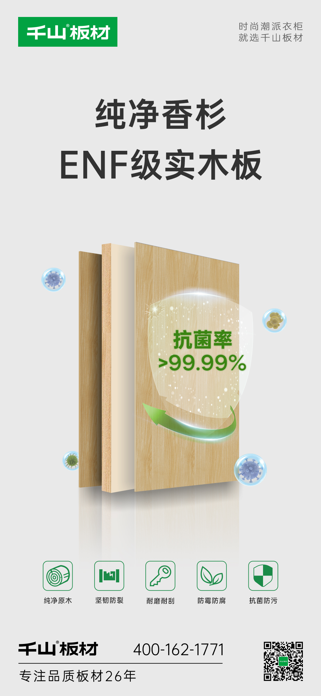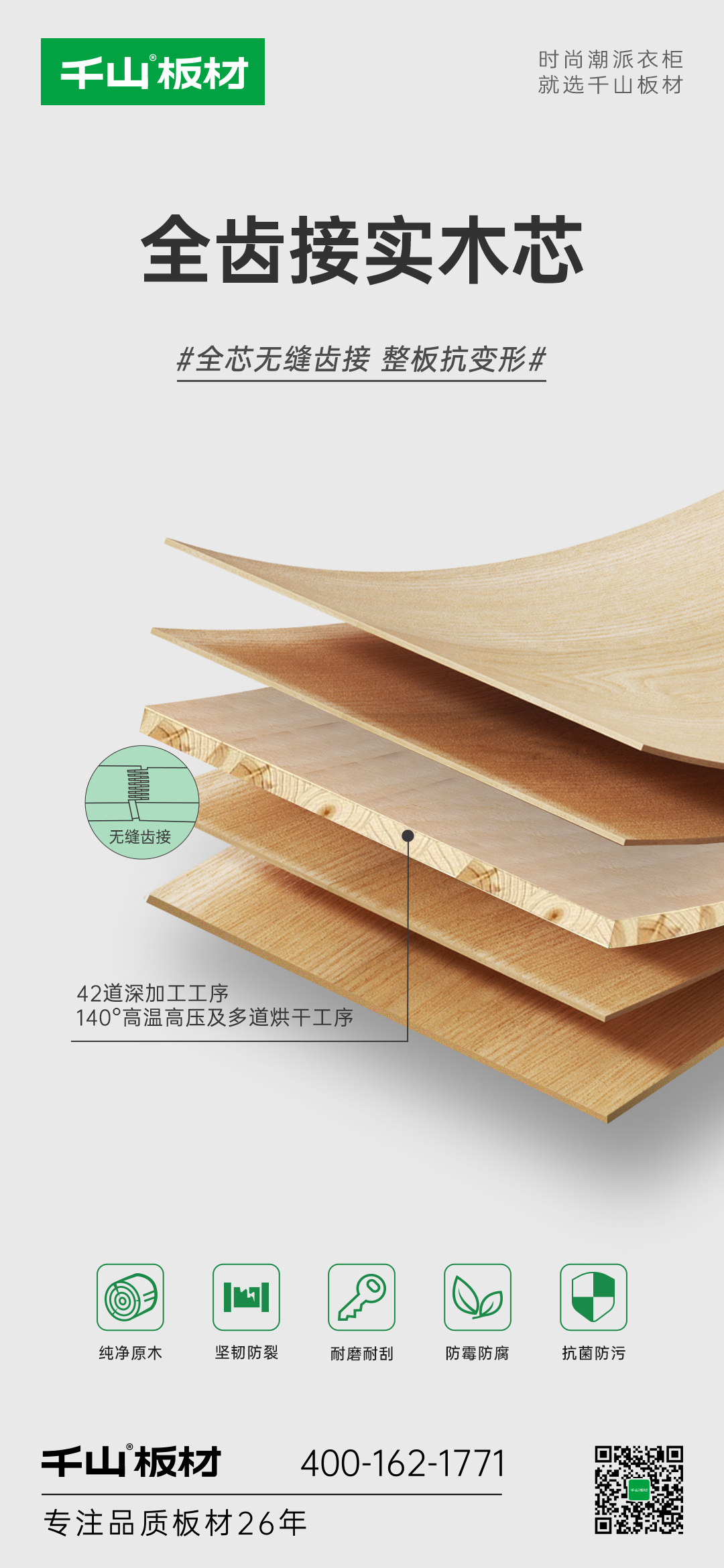 千山板材實木板順勢而生,甄選天然香杉木為原料,自帶原木醇香,實木芯性能更優(yōu)異,環(huán)保達國標最高ENF級,用品質呵護我們的家居健康。