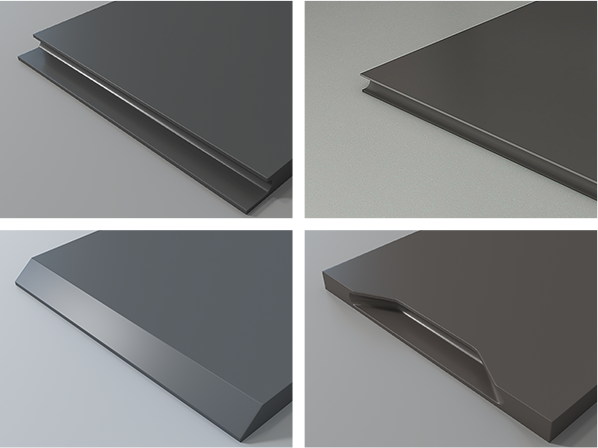 可做造型有J型、C型、45度斜邊、牛角四種平板封邊工藝,并采用德國豪邁S500激光封邊或德國膠王PUR封邊。
